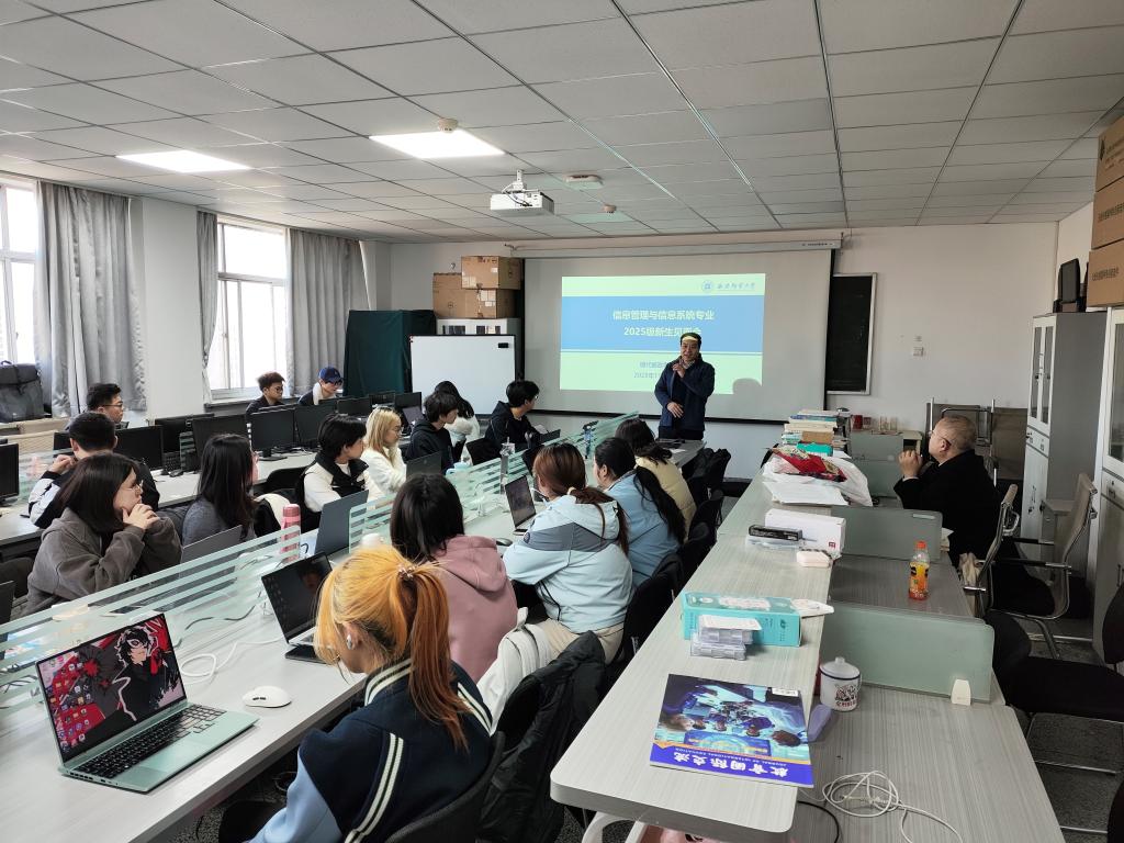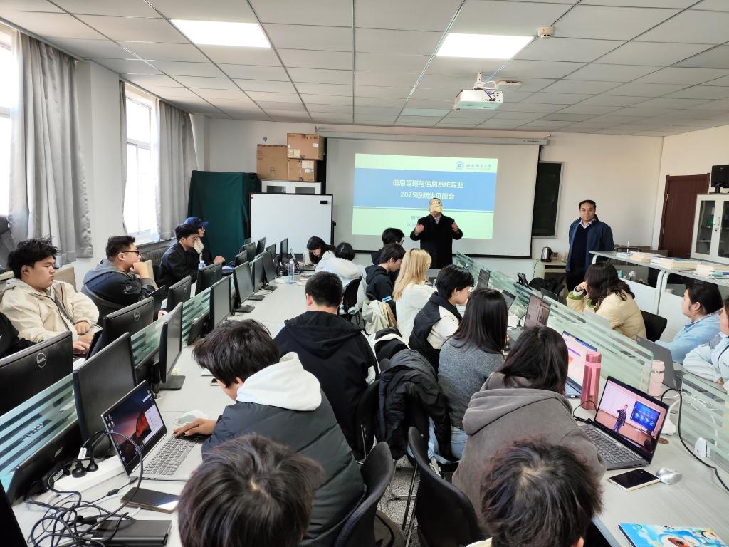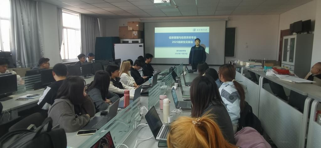 11月29日,信息管理与信息系统系召开了2025级新生见面会,会议由系主任毋建宏老师主持,系部教师朱烨行、徐超,2025级全体新生、高年级学生代表参加本次会议。会上,毋建宏主任首先对2025级新生表示了欢迎,并对信管专业的情况进行了介绍,勉励同学们在接下来的四年中珍惜时间,努力学习。接下来,系部教师朱烨行和徐超对2025级新生发表了寄语。朱烨行老师建议同学们在校期间不仅要努力学习专业知识,还要提示自己的综合素养和能力。徐超老师建议同学们要明确自身规划,在校期间努力提示自己,为后续的发展打好坚实基础。