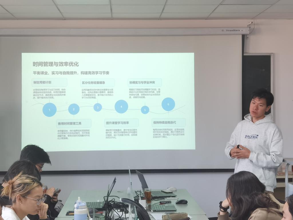 本次新生见面会还邀请了信管专业新考取我校的硕士研究生和高年级本科生对本科阶段的学习经验进行了介绍,主要介绍了时间管理、自我提示、效率优化和发展方向等内容。通过本次见面会,2025级新生对本专业有了更加深刻的认识,为后续的专业学习打下了良好的基础。